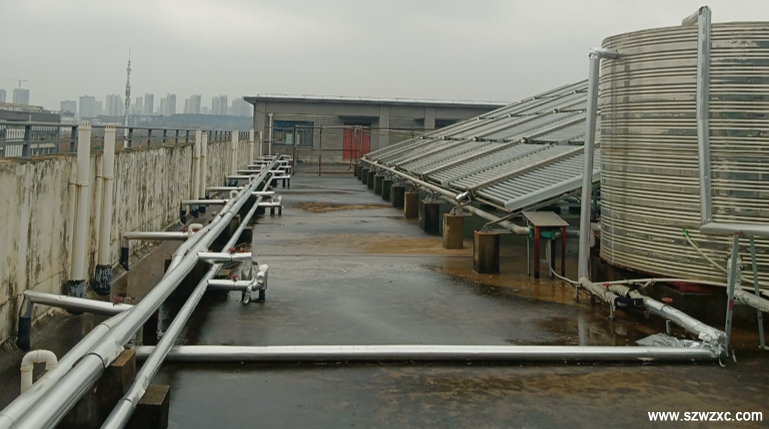 ? ??B、公司在自建工業(yè)園深圳、武漢、鄭州、成都、廊坊、煙臺、寧波等地宿舍樓頂空余面積位置鋪設光伏發(fā)電系統(tǒng),首先解決熱水供應系統(tǒng),讓宿舍用熱水可以不用電能,節(jié)約用電。